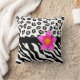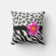 Black & White Zebra & Cheetah Skin & Pink Flower Cushion