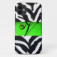 BLACK WHITE ZEBRA FUR EMERALD GREEN GEM MONOGRAM, Case-Mate iPhone CASE