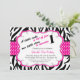 Start your celebration off right with this trendy black and white zebra stripe invitation with a hot pink polka dot ribbon across the centre. Perfect for that little diva turning One! There's a white bubble shaped centre with a hot pink trim. The party information is written in the white tag. Check out the many other products and designs in this line. © babystar