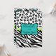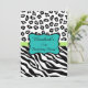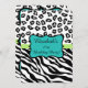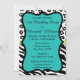 Customise this sophisticated invitation for a 21st birthday party or customise for another year or event. The design features black and white zebra stripes and leopard or cheetah skins combined for a modern design. A turquoise teal blue emblem outlined in black sits on a lime green bar and creates a personalisation area, with the name and event that are easy customise. The back of the invitation includes fields for all of your information for a 21st birthday party or other event. You can easily change and delete fields as needed. Colours are white, black, turquoise and lime green. Wild animal leopard and zebra skins for graphic design is one of the hottest art and design trends, and is extremely and popular. Coordinate with other products for a stylish party.