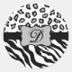 Black White Zebra Leopard Skin Monogram Classic Round Sticker