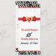 Black white zebra print with red bow and jewel wedding personalised geremony program that features a black and white zebra print border and a red ribbon across it with a bow and a heart shaped jewel also in red with gold outline and strass which adds a little bling. Note the bow and heart diamond jewellery is a "printed on" illustration and not a real crystal, so are the strass. This trendy design combines its modern and trendy elements with the Old English font that gives it a touch of vintage and retro feeling. An elegant, stylish design perfect not just for a winter wedding.