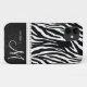Elegant Black / White Zebra Pattern on black damask with personalised monogram. Add your name and initial.
