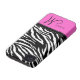 Elegant Black / White Zebra Pattern with personalised monogram and hot pink background.. Add your name and initial.