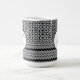 The top part of your mug is covered with a repeating retro medallion pattern with concave diamond shapes inside, and the bottom has rows of zigzags of different thicknesses. Over the centre areas where the patterns meet is a white circle medallion featuring a black and white dotted border. Over that is a space for your monogram. Change the letter to whatever you like. You may also change the monogram's font if you like.