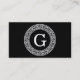Black Wht Greek Key Rnd Frame Initial Monogram Business Card
