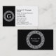 Black Wht Greek Key Rnd Frame Initial Monogram Business Card