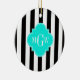 Black Wht Stripe Bright Aqua Quatrefoil 3 Monogram Ceramic Tree Decoration