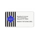 A stylish, modern, chic striped pattern in black and white. Customise the cobalt blue quatrefoil label with a three initial monogram or change the design to add your name or other text. (Click on "Customise it" to change the font, adjust font sizes, font colours, add additional text fields, etc.)