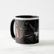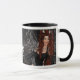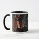 decor digitally painted with lovely details - one side shows the Black Widow with mask, connected by a shiny spider to the other side of the mug, where you can see the Black Widow without the mask.