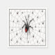 This clip art is a picture of the black widow spider with 8 legs in her web. A red dot on the back of the spider is a sign of the black widow. A nest full of babies has just escaped into her web. A coloured backround was added. These paper napkins will be a great addition to your holiday party. Available in 2 different styles with a black, yellow, orange or white backrounds.