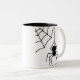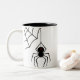 Scary Halloween mug with a black widow spider hanging from her web. Available on any style mug or travel mug.