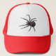 Custom Trucker Style Baseball Hat In Red And White Colours casual fun fashion statement accessory printed with Black Widow Spider Original Drawing Art hand drawn graphic design artwork illustration by TheFabricSeal print on demand shop at Zazzle.com #ZazzleMade ©️Original. https://www.zazzle.com/store/thefabricseal