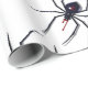 A creepy spider sits waiting for its next victim to devour. Blood and venom drip from its sharp fangs. A couple of flies land nearby and begin to wash, unaware of the danger they are in.