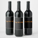 Black wine label with orange text.