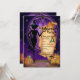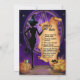 A slinky black witch standing in front of a purple pentagram with pumpkins in the foreground, her black cat familiar and a couple of toads, is inviting you to her Halloween party. If you dare refuse, be prepared to be turned into a toad! (And as an added bonus you can check out her rules on the back of the invitation).