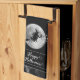 Add a spooky design to your kitchen with this Black Witch Silhouette Halloween Kitchen Towel. Featuring a witch silhouette soaring on a flying broomstick against a glowing full moon with star trails, this towel is set on a mystical marbled background. The Happy Halloween greeting in elegant script adds a festive touch and is perfect for drying dishes or as a Halloween kitchen accent. Durable and machine-washable, this towel brings enchanting style to your spooky season kitchen theme.