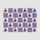 Black witches on a purple and white chequered pattern.