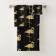 BLACK WITH GOLD FLAMINGOS BATH TOWEL SET
