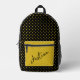 Lightweight and durable, our custom all-over-print Backpack is just what you need. The spacious interior is ideal for travel, school, gym, or any mobile storage need. Bring your stuff with you in style! Features Adjustable padded shoulder straps, two chambers on the inside for laptop storage, mesh side pockets and an identification label.