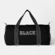 Black With Grey Text On Black Solid Colour Duffle Bag