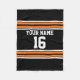 Black with Orange White Stripes Team Jersey Fleece Blanket