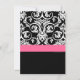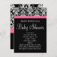 Elegant black background with hot pink fuchsia magenta accent, and black and white damask pattern. Fresh, clean and elegant damask accent, and coloured horizontal accent strip. Customise online with your girl baby shower details.