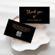 These simple and stylish dark black small business branding and packing thank you cards feature faux rose gold casual, modern script typography, along with an elegant matching heart and a place to add your name. There is a scannable QR code on the back. You can adapt the message to offer a discount to your customers. A look that is both stylish and professional, and perfect for any type of occupation, such as content creator, makeup artist, hair salon stylist, and more.