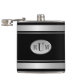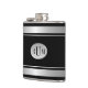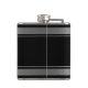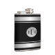 Black and Silver Border – © Sunny Mars Designs. Classy, elegant custom printed black and silver monogram template drink flask with a black background and two top and bottom double silver metallic lines or bars as borders with the monogram text on a silver plate. Personalise it by adding your own initials, name and business details.