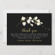 This design features a picture of watercolor white flowers twig with a few golden droplets, yellow handwritten font and white serif font. The reverse side of the card is black coloured.
