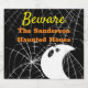 Beer Bottle Labels With "Beware" and personalised text Black with White Spider Webs and cute Modern Ghost Fun and Friendly Frightful Halloween Party / Haunted House Party.