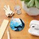 Black wolf standing alone in the shadows of a dark forest. The nature scene is backlit with a bright sun beaming icy blue lighting through the trees.