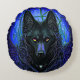 Black Wolf Dog on Blue Round Cushion