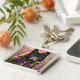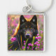 black wolf in pink flowers key ring