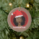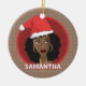 Black Woman Christmas Santa Hat, Red Dots, Brown Ceramic Ornament