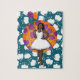 Black Woman Colourful Balloons Flower Pattern Teal Jigsaw Puzzle