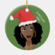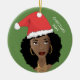 Black Woman, Red Santa Hat, Current Year, Green Ceramic Ornament