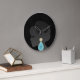This dark silhouette of a womans profile wearing elegant oversize teardrop earrings of vivid blue are the focus of this print.