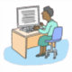 Sticker showing a black woman working in an office at her computer. Black female office worker.