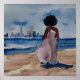 BLACK WOMEN ON BEACH WITH SAN FRANCISCO SKYLINE POSTER