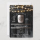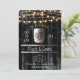 Black Wood String Lights & Barrel Rustic Wedding Invitation