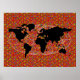 black world map polka dots poster
