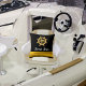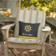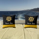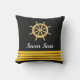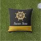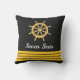A classic black background. Decorted with faux gold steering wheel and 4 captain stripes. Personalise and add the boat name.