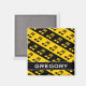 This magnet design features a pattern of black and yellow stripes containing beamed sixteenth note musical symbols. This could make a great gift for a musician, a composer, or somebody who likes to listen to music. It also features a custom name.