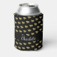 Decorated with happy, smiling yellow and black bumble bees. A chic black background. Personalise and add a name. The name is written with a modern hand lettered stylie script