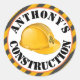 Black & Yellow Construction Hard Hat 4th Birthday Classic Round Sticker