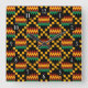 Square clock with a yellow, green, red, and black Kente cloth pattern with white numbers. This is an African art design found in Ghana. Customisable. The perfect clock to remind you of the spirit of Kwanzaa year round.