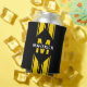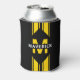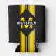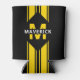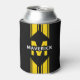 Personalised can cooler featuring a stylish black background, yellow sports stripes, your initial, and name. This custom can cooler would make a great gift for father's day or a birthday!