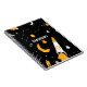 This notebook is perfect for those who are interested in space or astronomy. It has a black and yellow galaxy design on the cover. The pages inside are lined and ready for you to take notes. It's also the perfect size for carrying around with you wherever you go! Great for back-to-school and office work.