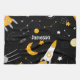Black Yellow Outer Space Stars Moon Rocket Tea Towel